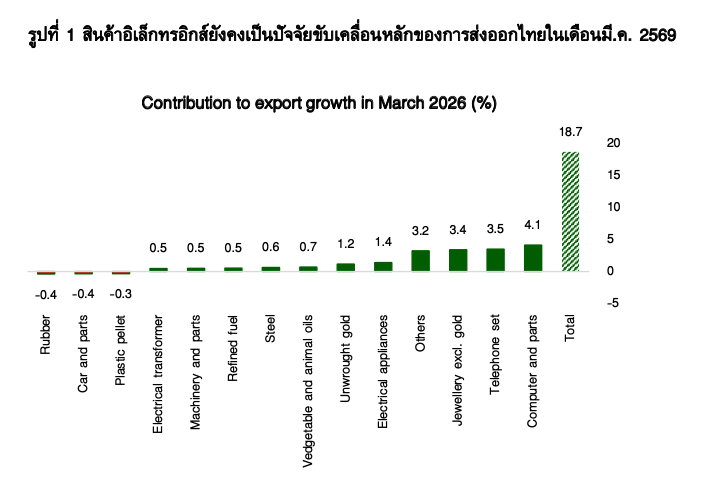 Home การส่งออกไทย มี.ค. 69 ขยายตัวสูงกว่าคาดท่ามกลางความขัดแย้งในตะวันออกกลาง