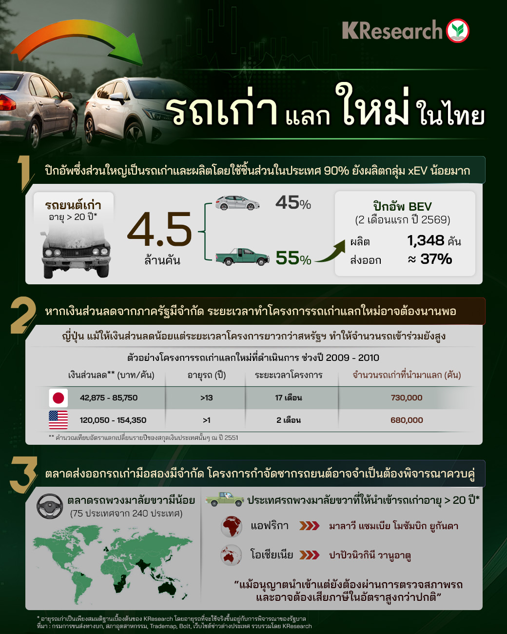 รถเก่าแลกใหม่ในไทย มีหลายปัจจัยต้องพิจารณาเพื่อส่งเสริมการผลิตในประเทศ (ศูนย์วิจัยกสิกรไทย Infographic)