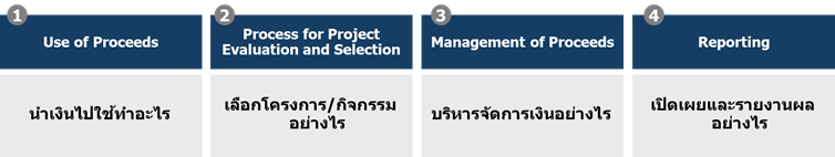 CTBG เป็น label ใหม่ที่เพิ่มขึ้นมาจากมาตรฐานการออกตราสารหนี้เพื่อความยั่งยืนที่มีอยู่เดิมของ ICMA** ได้แก่ Green Bond Principles, Social Bond Principles, Sustainability Bond Guidelines (เรียกรวมว่า มาตรฐาน GSSB) และ Sustainability-Linked Bond Principles โดยที่ CTBG ยังคงยึดโครงสร้างหลัก 4 องค์ประกอบสำคัญเช่นเดียวกับมาตรฐาน GSSB ของ ICMA ซึ่งมีองค์ประกอบดังนี้